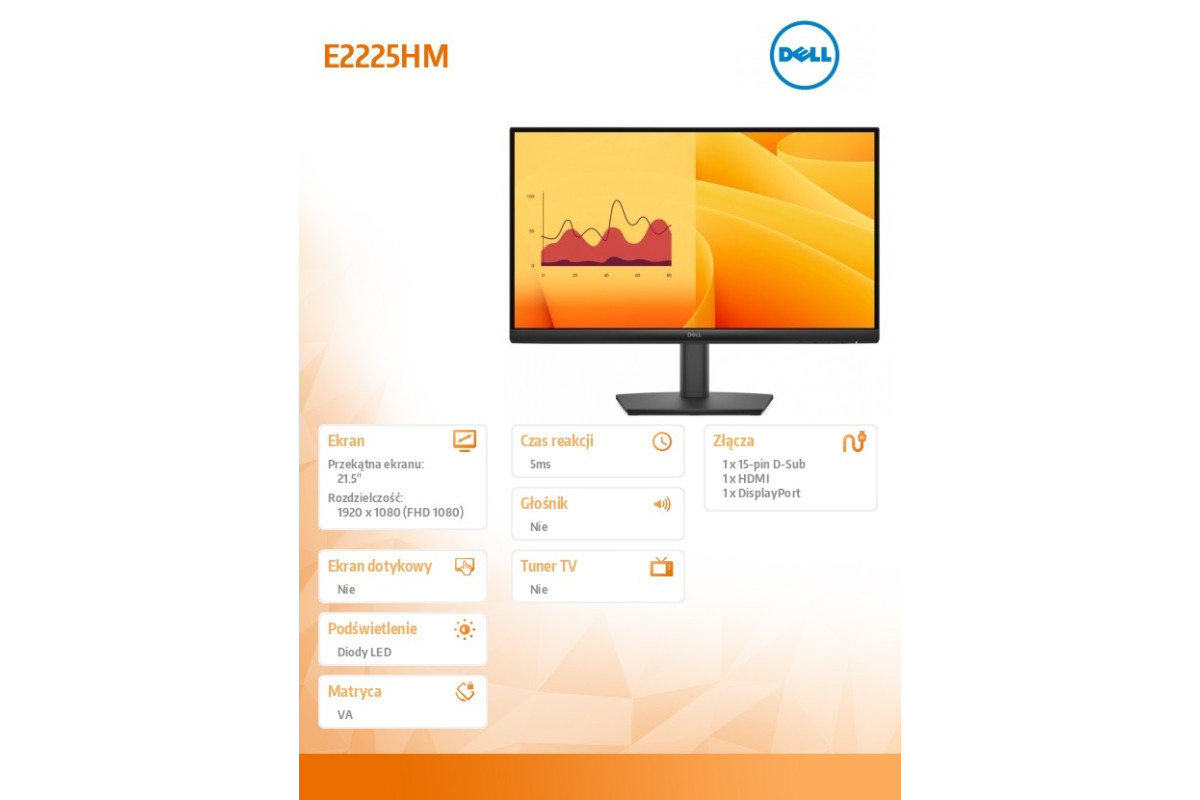 Dell monitor E2225HM 21.5" | LED VA 1920x1080 | DP HDMI VGA| GW. 3 lata