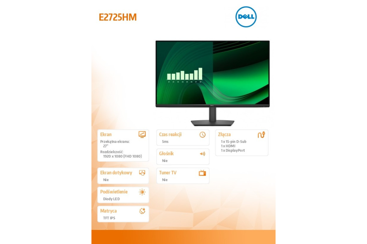 Dell monitor E2725HM 27" | LED VA 1920x1080 | DP HDMI VGA| GW. 3 lata 210-BRDQ