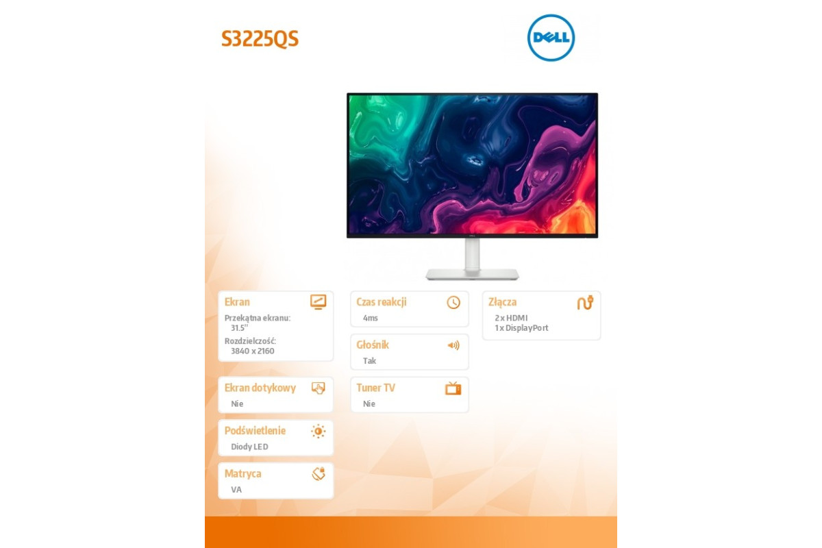 Dell monitor S3225QS 31.5" IPS VA 4K/HDMI/DP/Głośniki GW. 3 lata 210-BQWP