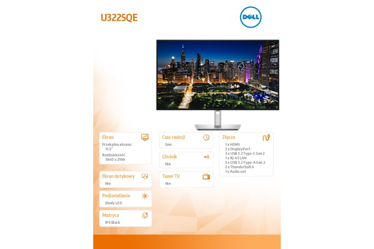 Monitor Dell UltraSharp 32 4K z koncentratorem Thunderbolt - U3225QE